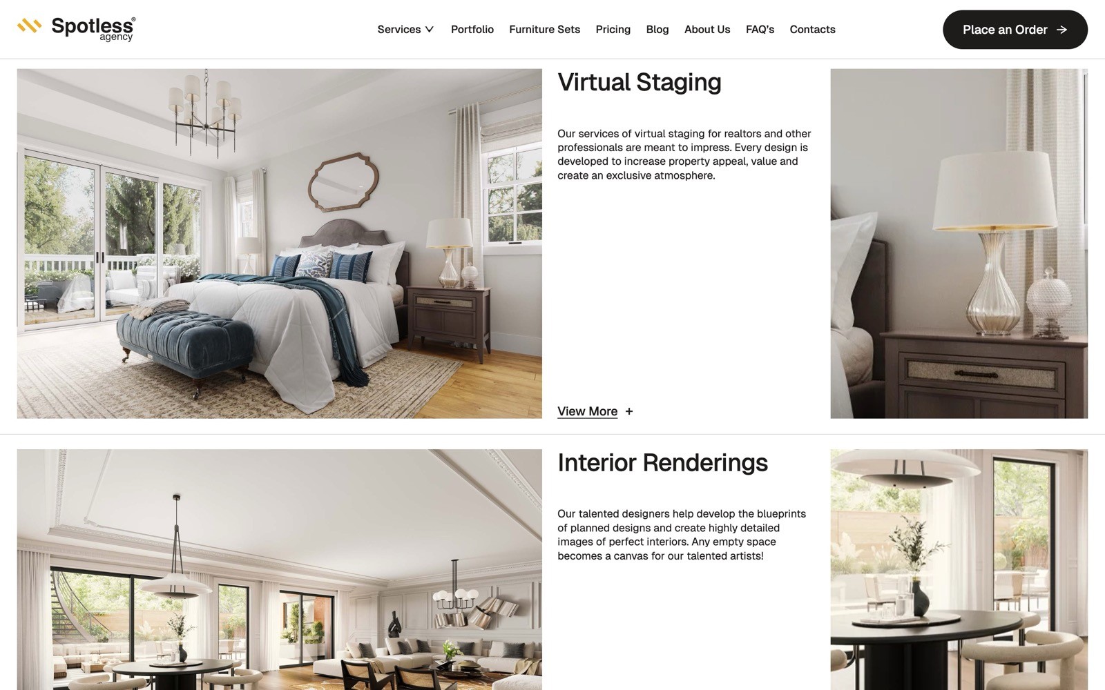 Spotless transform properties into appealing environments, let any buyer visualize a future interior, and showcase the potential of any space.